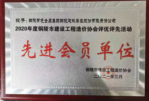 • 銅陵市造價協(xié)會先進(jìn)會員單位