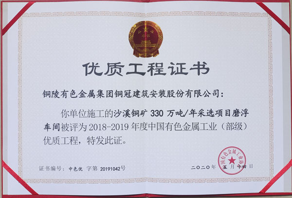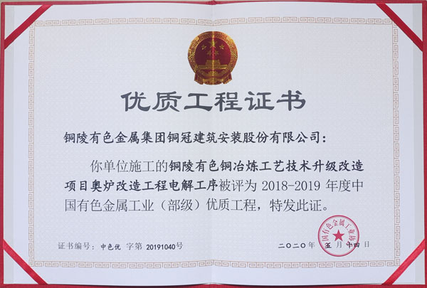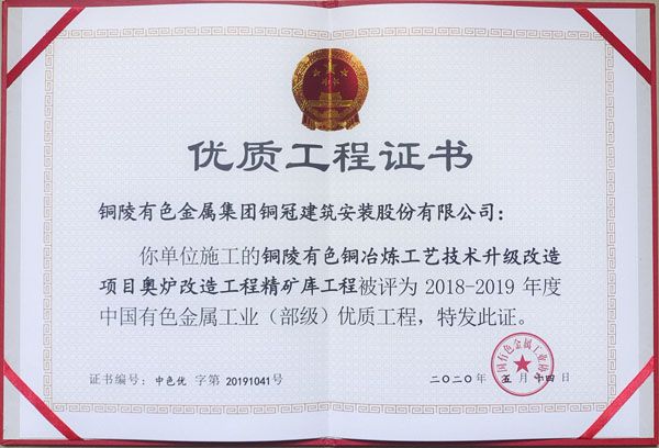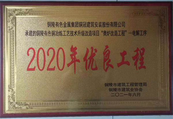 • 銅陵市2020年優(yōu)良工程(銅陵有色銅冶煉...