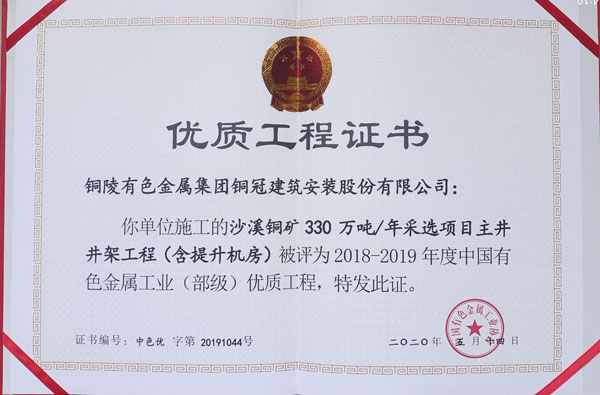 • 沙溪銅礦采選項目主井井架工程(部優(yōu))